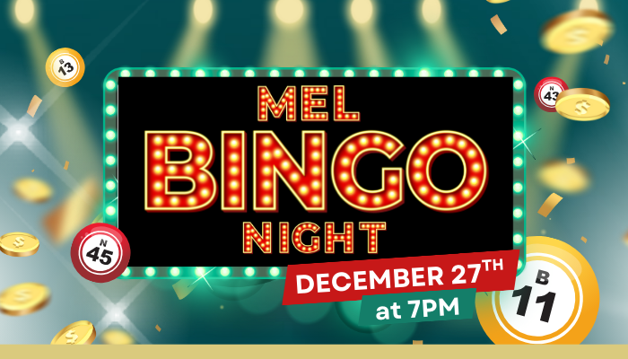 Whether you’re a bingo regular or it’s your first time, we promise a warm, friendly atmosphere and lots of joy. MEL will also offer a special cider toast for all attendees to welcome the New Year, celebrating the wonderful community we create together.