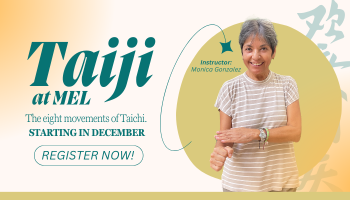 Join Mónica González to explore the eight movements of Taichi, Tuesdays and Thursdays at 9:30 – 10:30 AM. Classes are $100 per session or you can purchase the seven sessions of the month for the reduced price of $575. Visit the MEL Shop to reserve your spots.