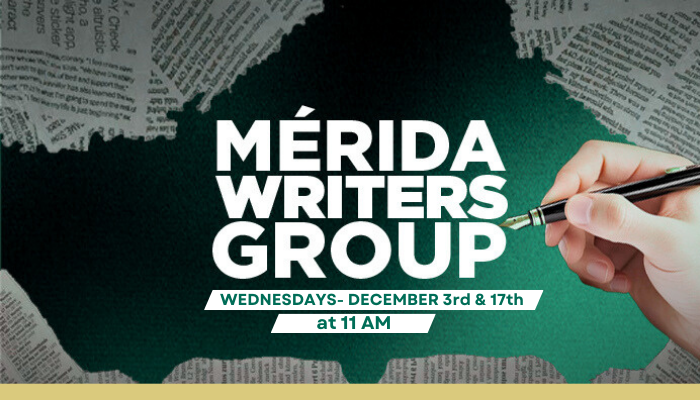 The Mérida Writers Group meets in our classroom every-other-week, including December 3 and December 17. This is an opportunity for writers of all levels and genres to share their work. Join them starting at 11:00 AM.