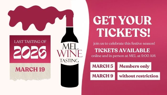 Tickets are on sale now at MEL or online in the MEL Shop. Tickets cost $400 for MEL members and $500 for non-members.