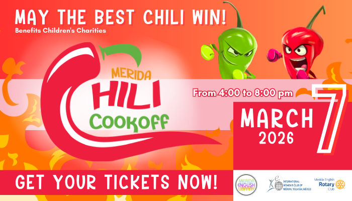 This 11th edition of the Mérida Chili Cookoff is set for Sunday, March 7, 2026, from 4:00 to 8:00 PM at Casa de Amistad in Itzminá. There will be live music, food and more fun activities!