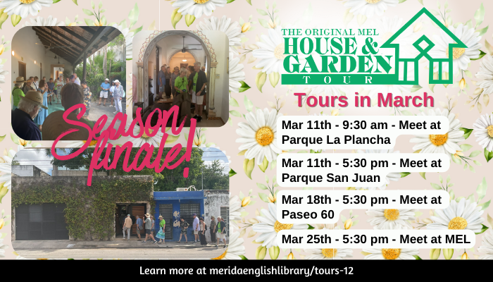 We invite you to explore the charm and beauty of Mérida with our House & Garden Tours, happening every Wednesday morning. Our special Neighborhood & Evening Tours continue: