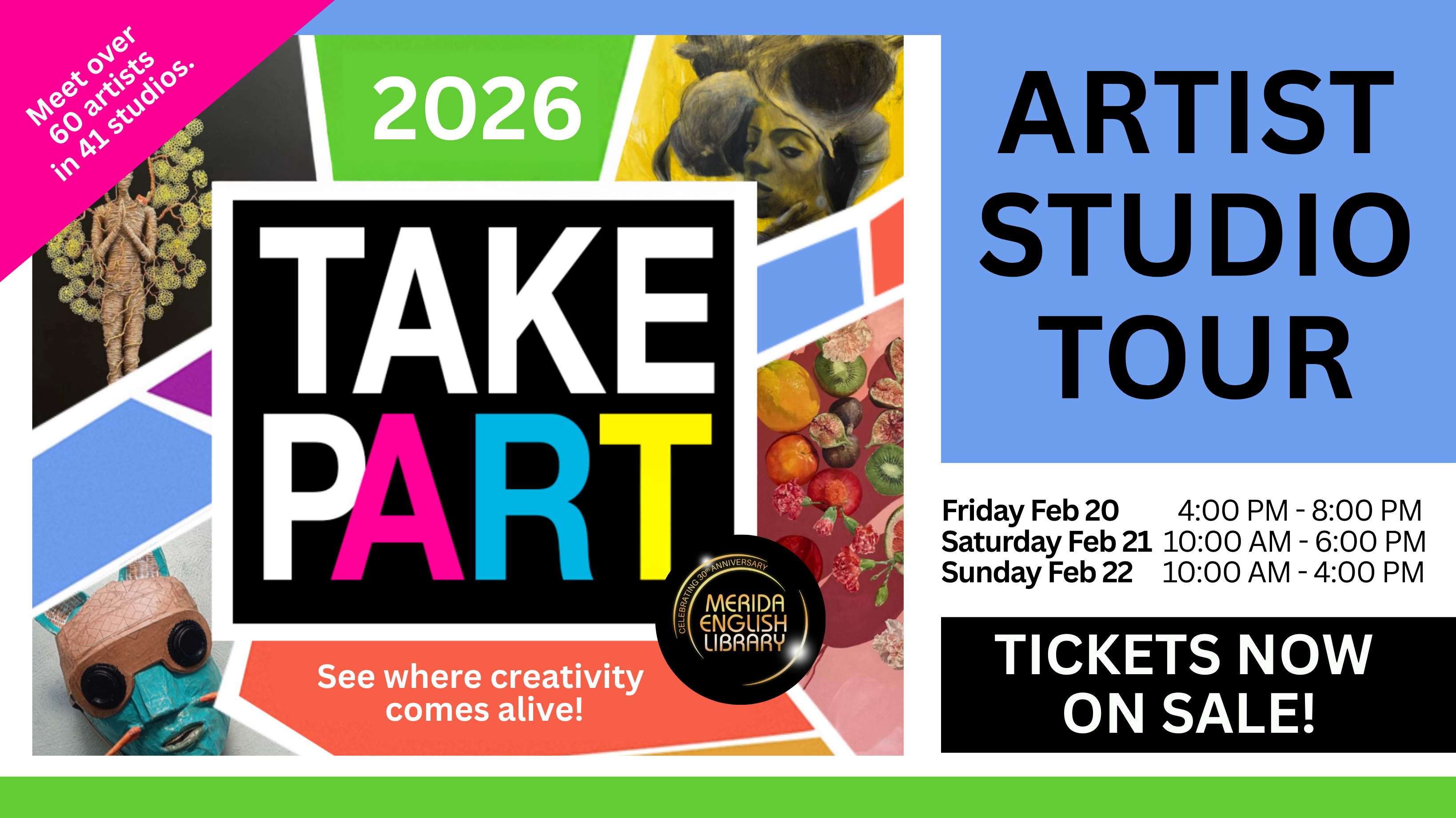 To give visitors plenty of time to explore studios throughout the city’s diverse neighborhoods, the 2026 tour offers expanded hours over three days. While many studios remain in Centro, the tour continues to grow — this year welcoming new studio locations in Miguel Alemán and Itzimná.