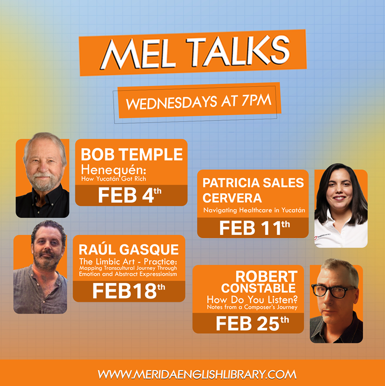 Remember you can always call the library at 999-924-8401 or send an email to info@meridaenglishlibrary.com for information. Visit our library website, Facebook page or Instagram profile for all of the weekly, monthly and upcoming events and never forget that libraries do change lives by offering communities a place to learn, create and belong.