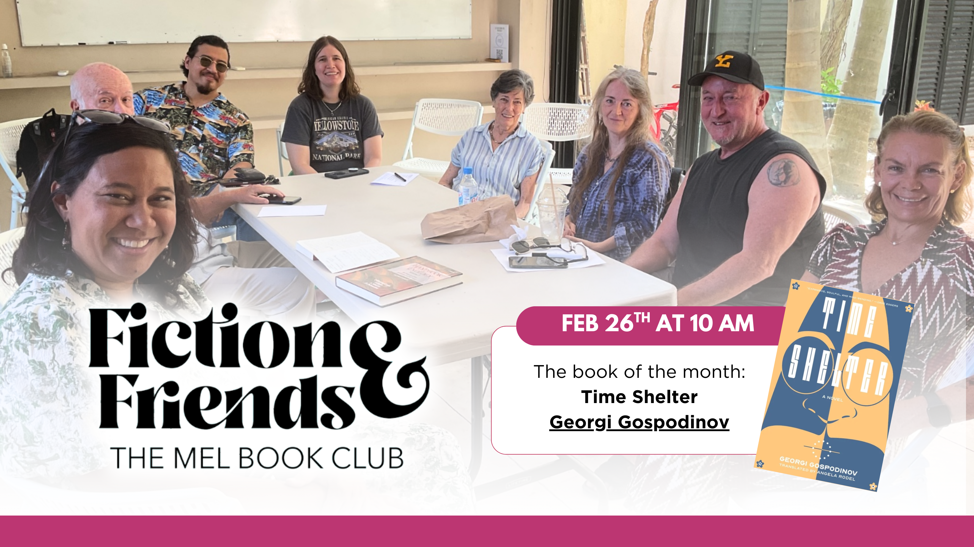 Our Fiction & Friends book club meets on February 26 starting at 10:00 AM. The selection for this month isTime Shelter by Georgi Gospodinov. You can read a synopsis here, and please visit our website for more information or to join.