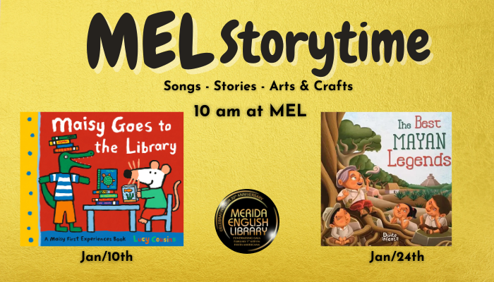 On Saturday, January 10, we will read Maisy Goes to the Library to celebrate libraries, and on Saturday, January 24, we will share some of the best Mayan legends in honor of Mérida Fest and to celebrate Mayan culture.