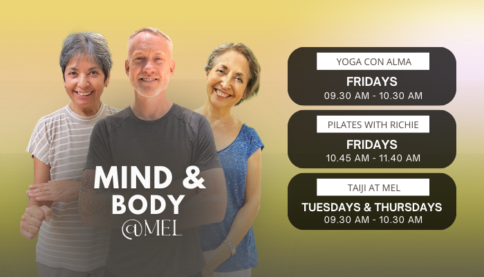 Join Richie at MEL on Fridays 10:45 am – 11:40 am in our air-conditioned classroom. Register online in the MEL Shop for a single session for $200 or take advantage of a special $700 monthly fee.