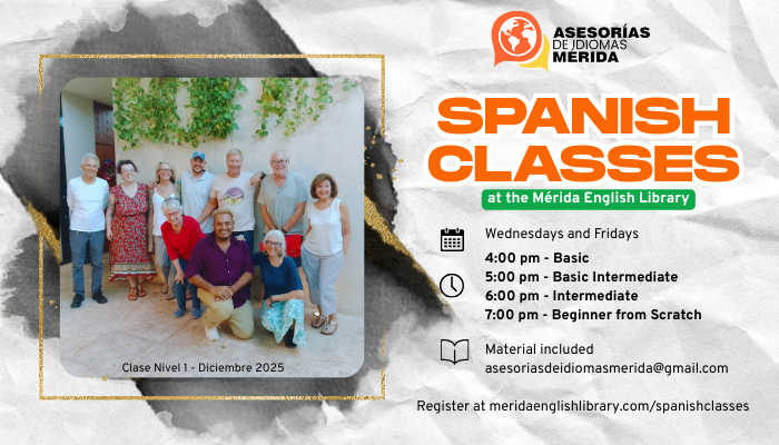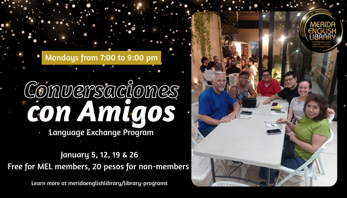 The Mérida Writers Group meets in our classroom every-other-week, including January 14 and January 28. This is an opportunity for writers of all levels and genres to share their work. Join them starting at 11:00 AM.
