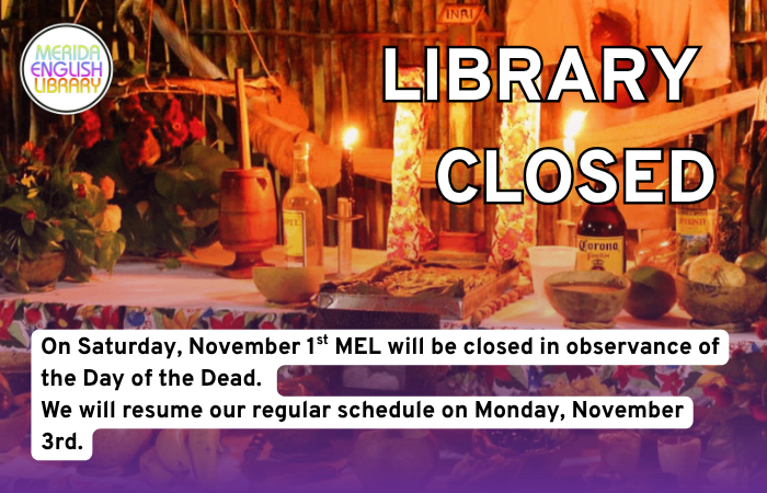 PLEASE NOTE THE LIBRARY WILL BE CLOSED ON SATURDAY NOVEMBER 1 FOR DIA DE LOS MUERTOS.