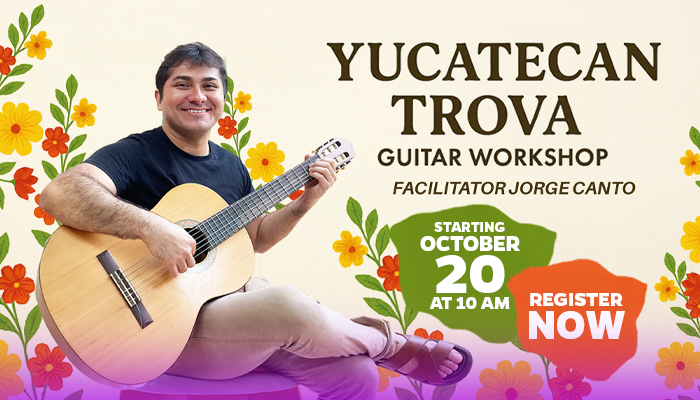 Trova is the most Yucatecan of all music styles, and musician Jorge Canto will present an eight-week, hands-on workshop that explores all the intricacies and history of this fascinating genre. The main objective of this workshop is for the guitar student to become familiar with and learn to play the five most important rhythms of Yucatecan Trova, and develop their capacity for musical appreciation, singing, and instrumental performance Each ninety-minute class will include conversation about the history of Trova including a review of the most important trovadores of Yucatán, and a practice session where you will put your new knowledge to use. The class will make extensive use of audio and video recordings and sheet music will be provided. Participants will need to bring a guitar, and a basic or intermediate skill is expected.