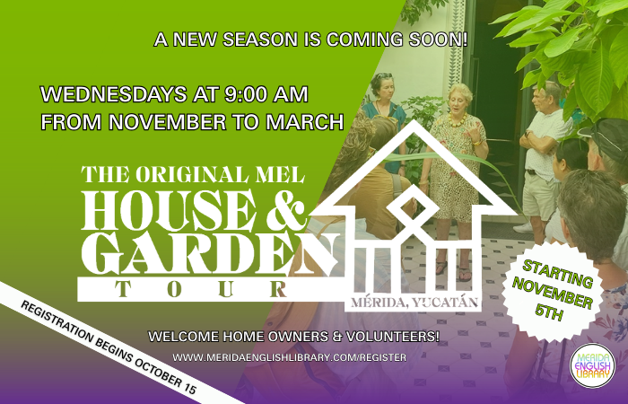 A team of people led by Ana Cristina Alaluf and Alfonso Lopez will be running the tour this year. Please contact them at tours@meridaenglishlibrary.com if you have any questions or if you want to discuss the logistics of including your home on the tour. You’ll be glad you did!